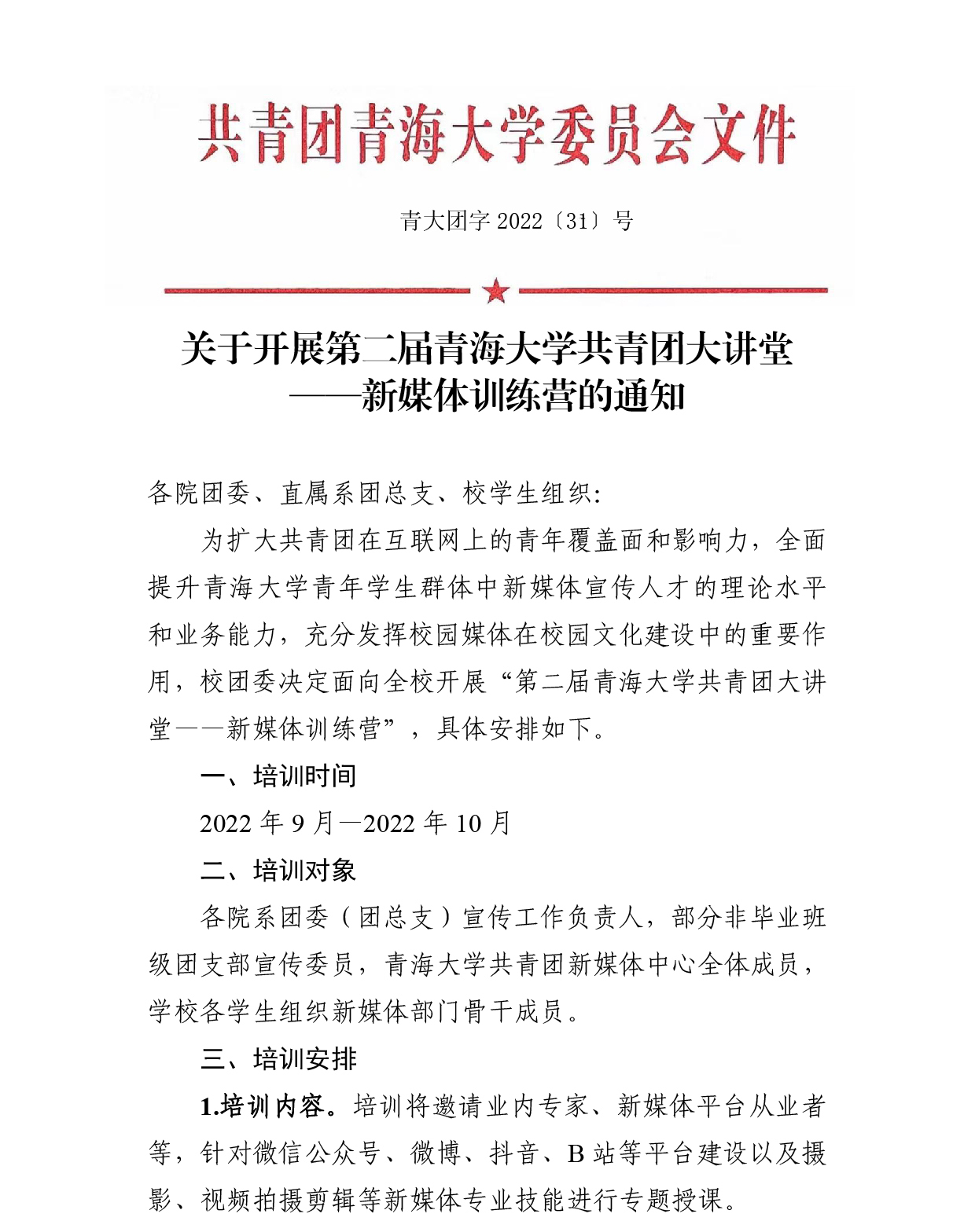关于开展第二届Cool18 共青团大讲堂 ——新媒体训练营的通知