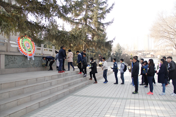 3月26日早8:00,参加扫墓人员在综合楼前集合,统一乘坐校车前往西宁市烈士陵园。怀着沉重的心情,大家排队有序进入烈士陵园,向人民英雄纪念碑敬献花圈,之后同学们佩戴白色胸花,手持黄菊,依次向人民英雄纪念碑献花,并举行了重温入党誓词活动。入党誓词活动结束后,全体默哀三分钟。