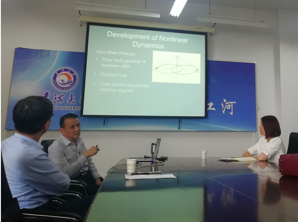 2018年6月22日下午,加拿大里贾纳大学Dr.Liming Dai教授到我院进行了学术交流,作了《非线性动力学的发展和应用》报告,报告由金培鹏院长主持,我院机械工程学科全体教师和研究生参加。