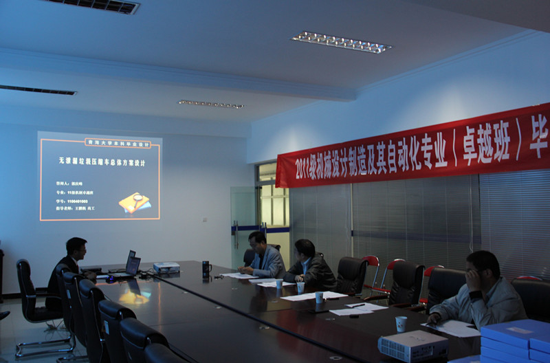 2011级机械设计制造及其自动化专业卓越班是2012年由青海省教育厅立项试点的卓越工程师优秀人才培养的试点班级,在整个培养过程中,立足产学研合作的培养模式,与青海一机数控机床有限责任公司、青海洁神集团合作培养适合于地方装备制造业发展的优秀专业人才。实施了多层次的实践活动和认识实习,大大提高了学生实践能力和工程应用能力。本次毕业设计的实践活动完全由企业工程技术人员独立指导完成,安排本校专业教师对实施过程给予一定的辅导,主要辅导毕业设计说明书的撰写、设计方法等工作,学生毕业设计的题目完全来自于企业的技术改造项目和实际生产设计,完全实现了真题真作的目标。毕业答辩过程中聘请企业高级专业技术人员为答辩组成员,答辩过程中,同学们结合PPT的展示和个人讲解,积极展示了自己设计成果,答辩组评委现场对同学们的答辩过程进行了点评,就其中的一些不足之处予以指正,并进行了深入地交流。