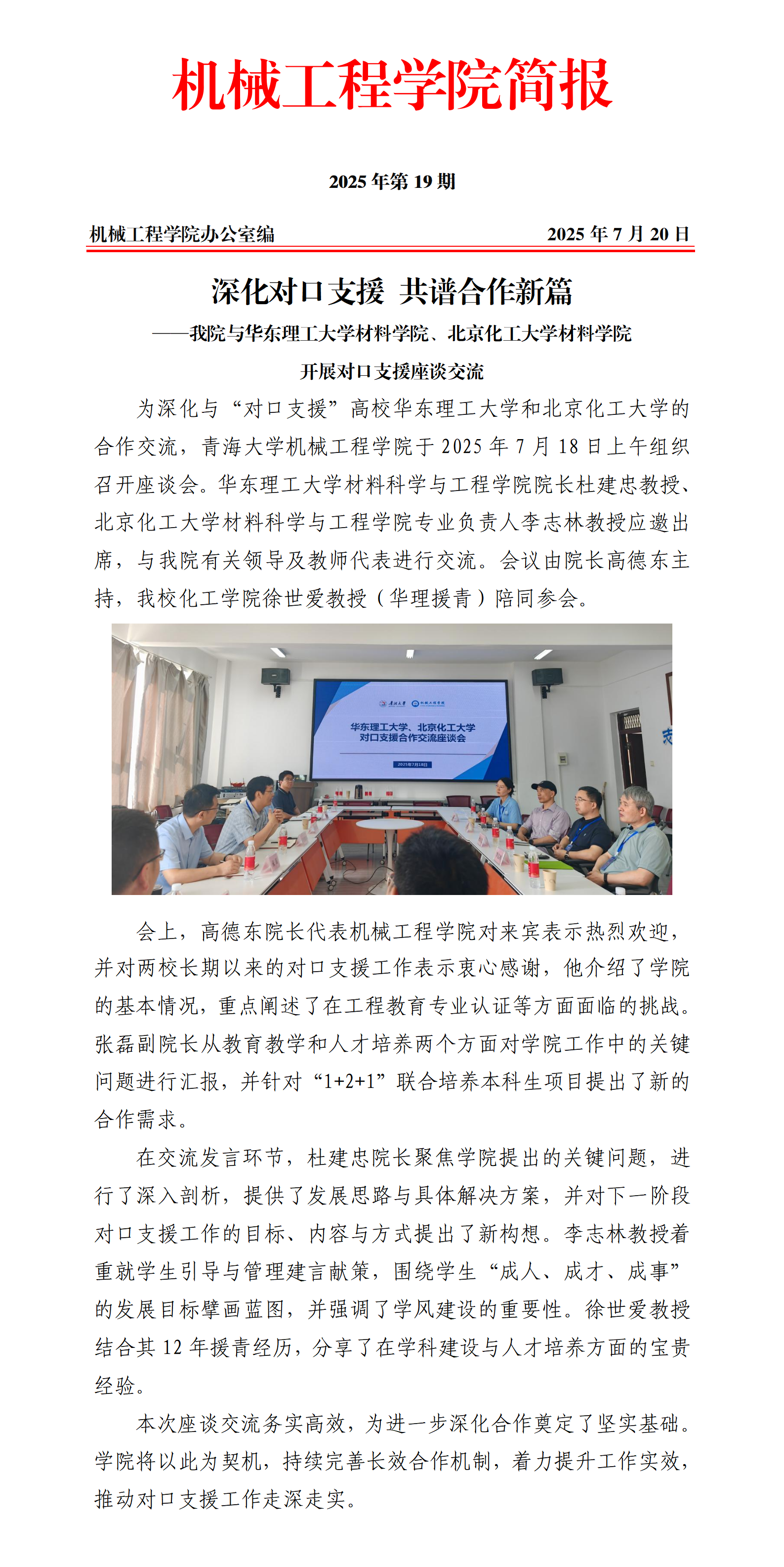 深化对口支援 共谱合作新篇——我院与华东理工大学材料Cool18 、北京化工大学材料Cool18 开展对口支援座谈交流
