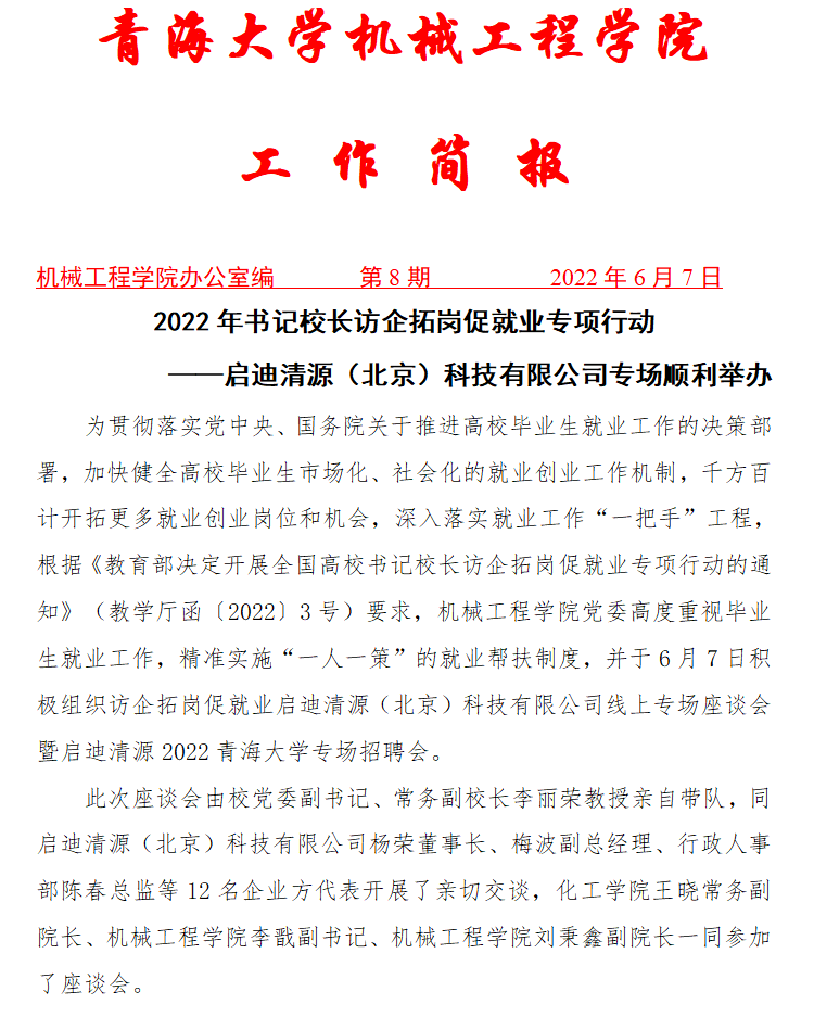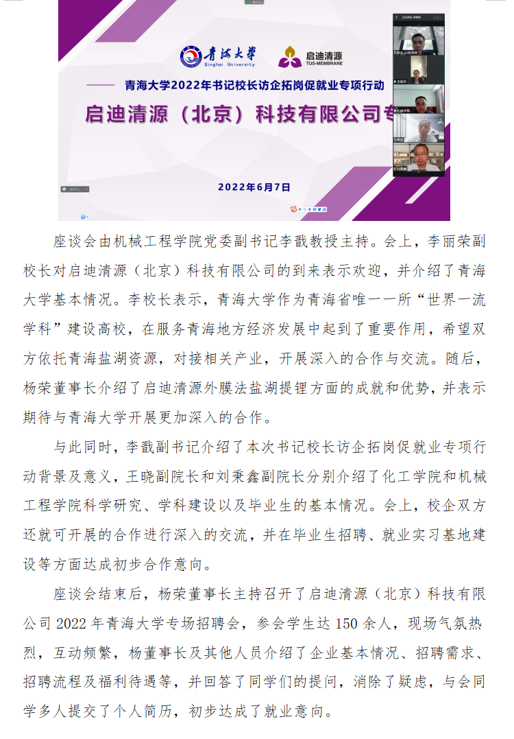2022年书记校长访企拓岗促就业专项行动 ——启迪清源(北京)科技有限公司专场顺利举办