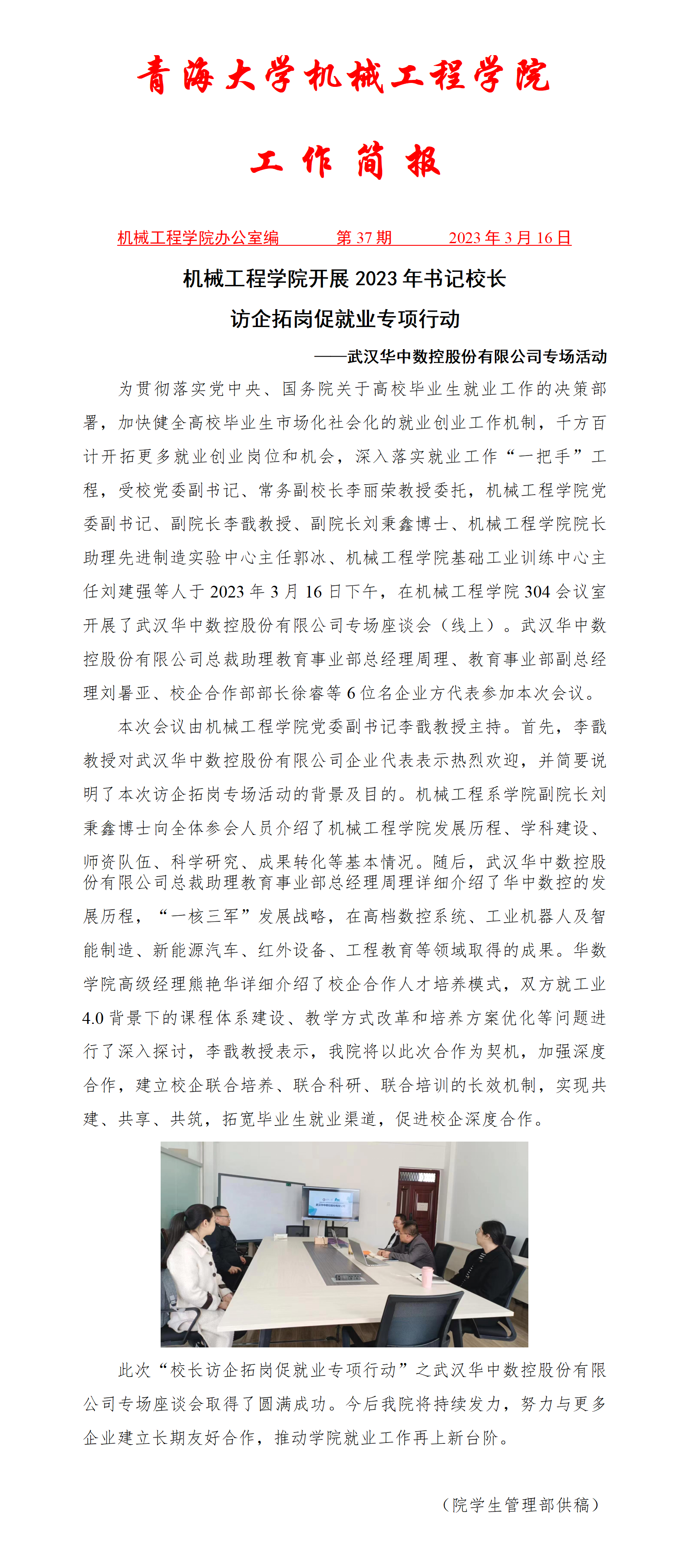 Cool18 开展2023年书记校长访企拓岗促就业专项行动——武汉华中数控股份有限公司专场活动