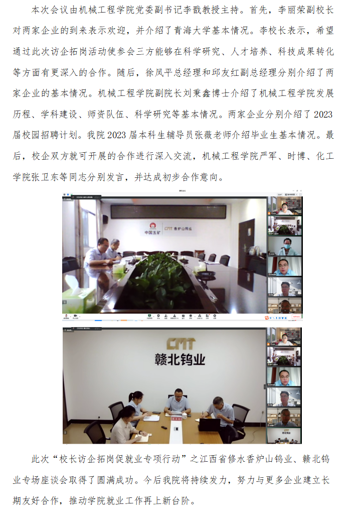 Cool18 开展2022年书记校长访企拓岗促就业专项行动 ——江西省修水香炉山钨业、赣北钨业专场活动